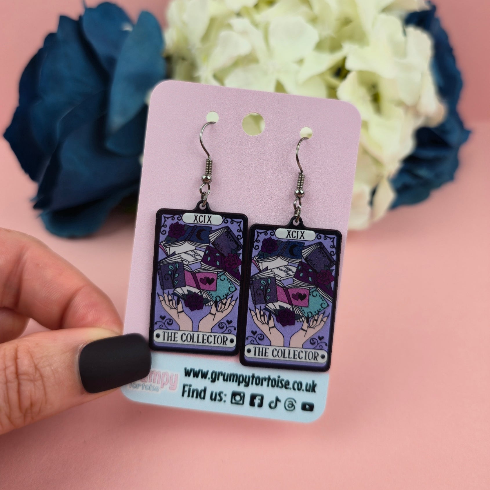 Acrylic Earrings - The Collector Reader Tarot Card Earrings - Book - Gift