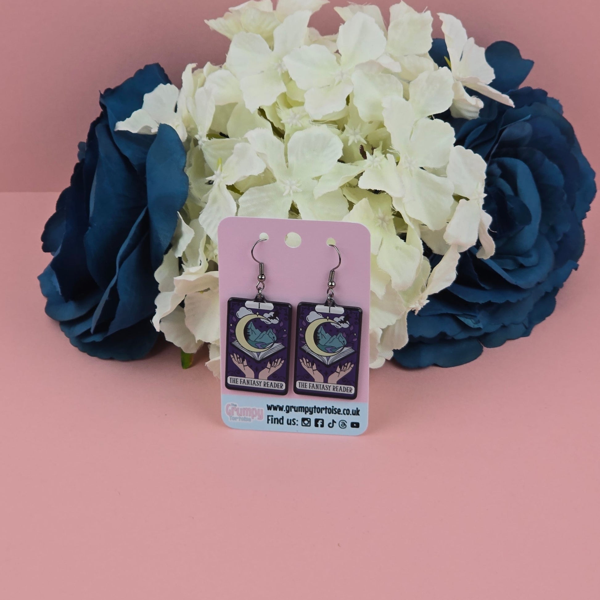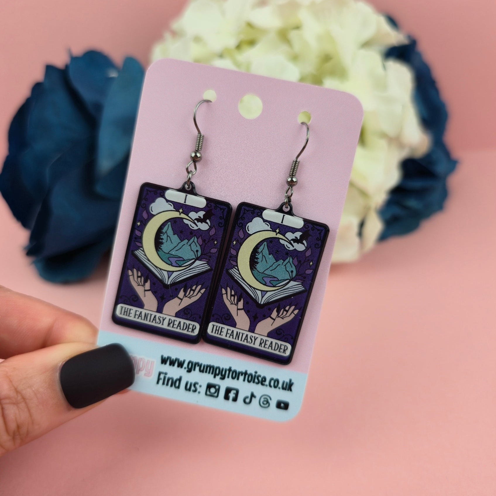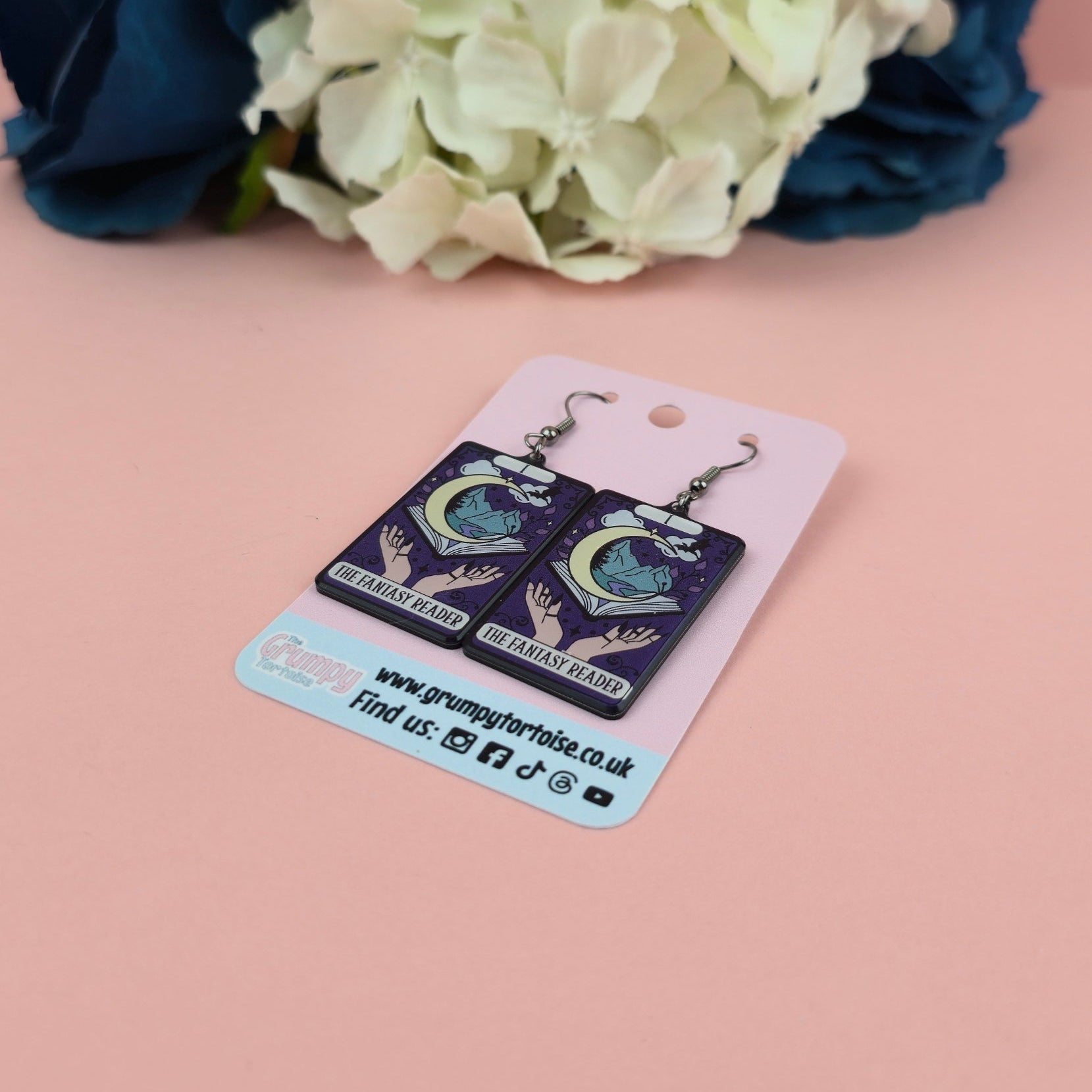 Acrylic Earrings - The Fantasy Reader Tarot Card Earrings - Book - Gift