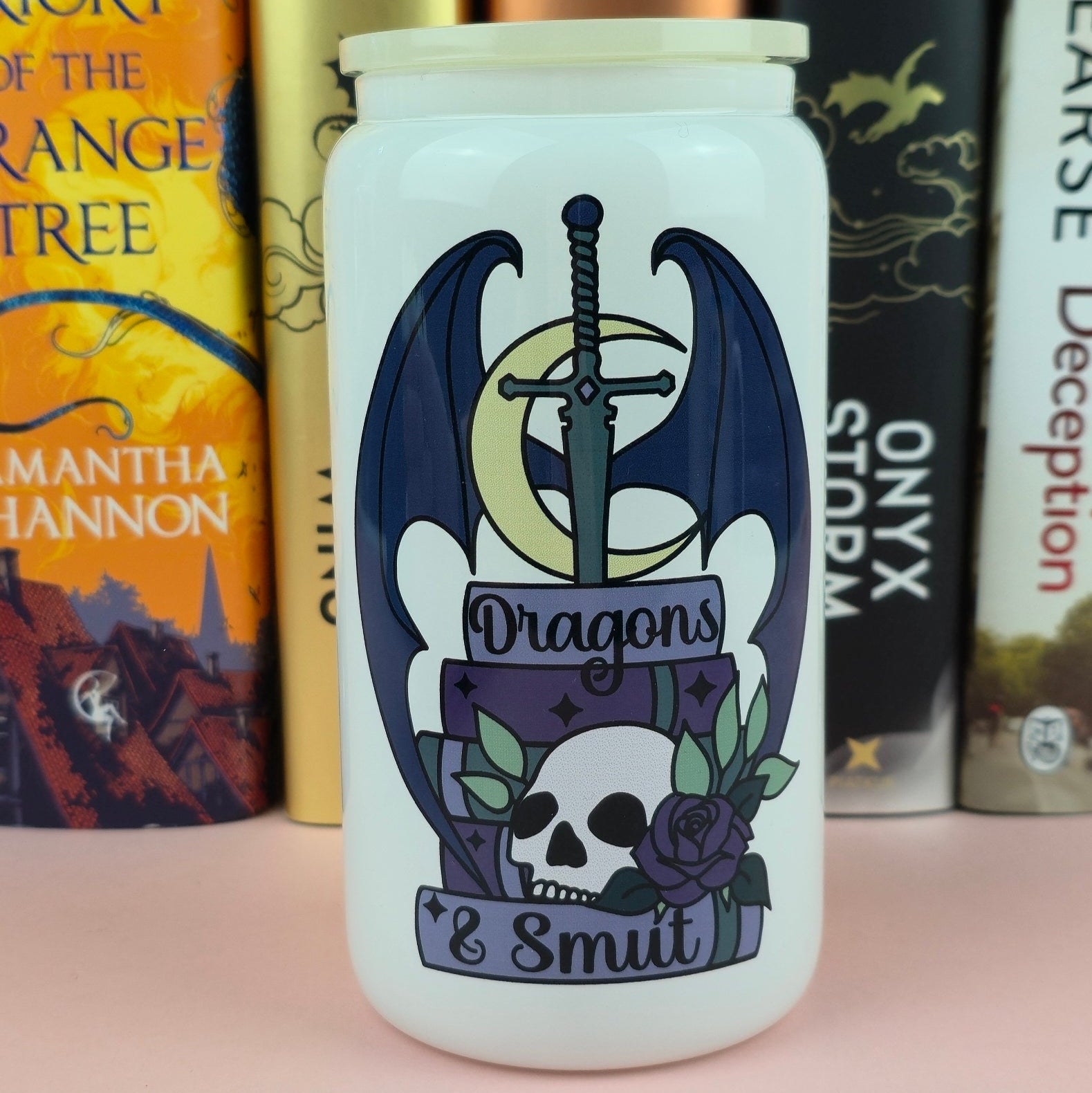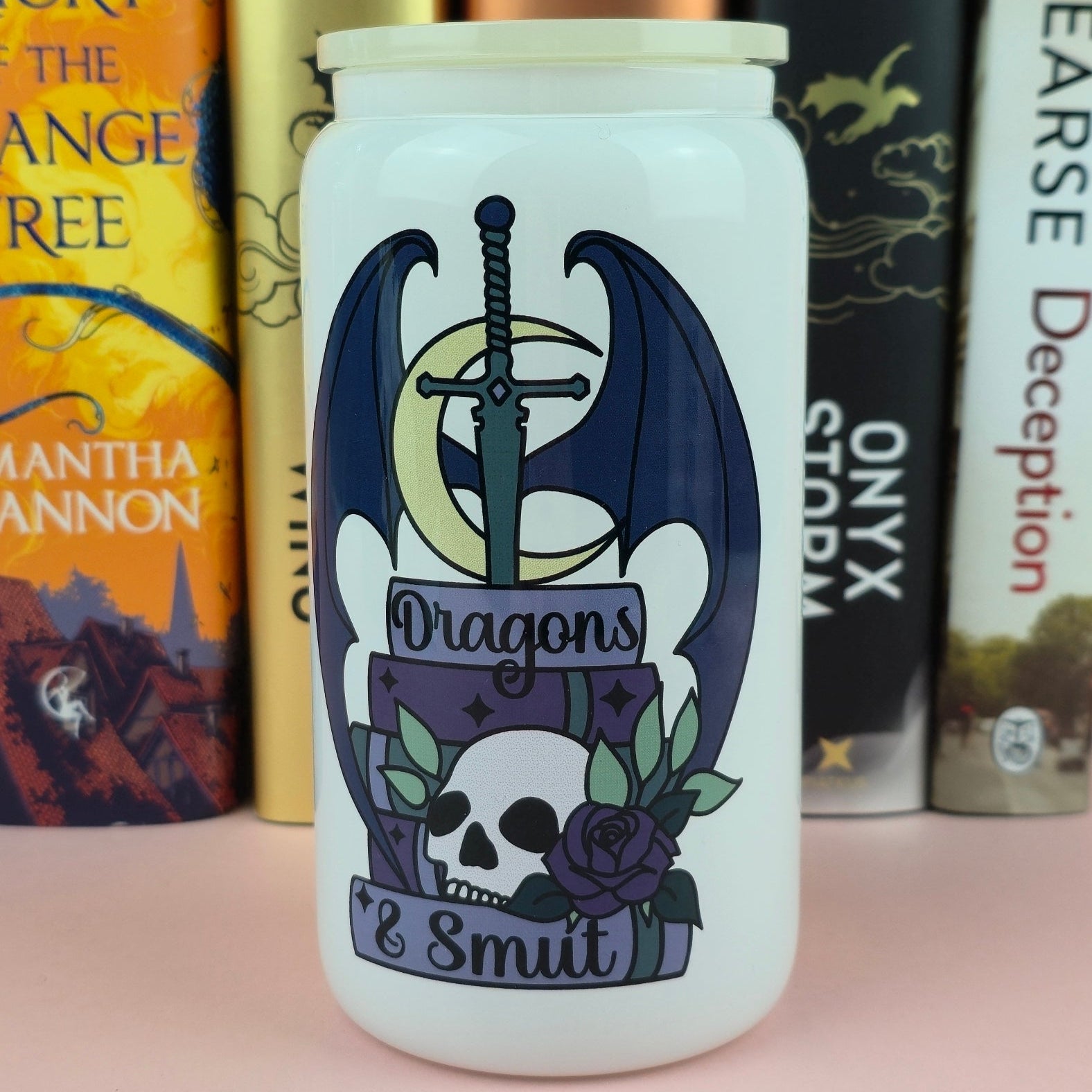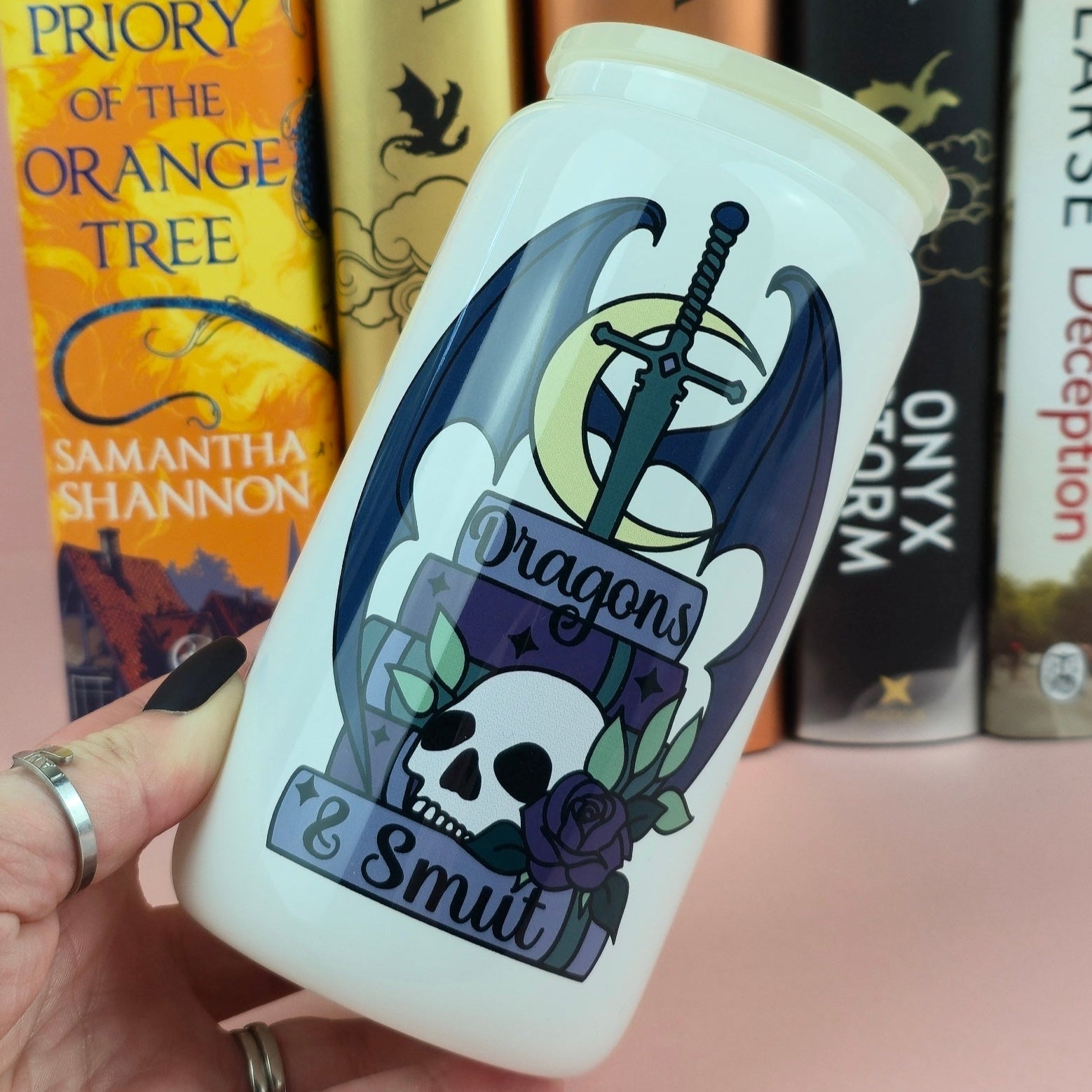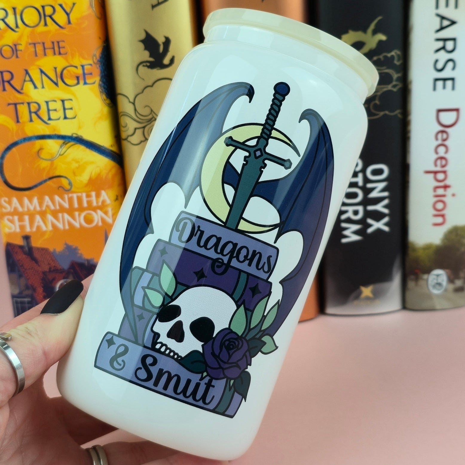 Glass Can - Dragons & Smut White Glass Tumbler - Bookish Gift - Reader