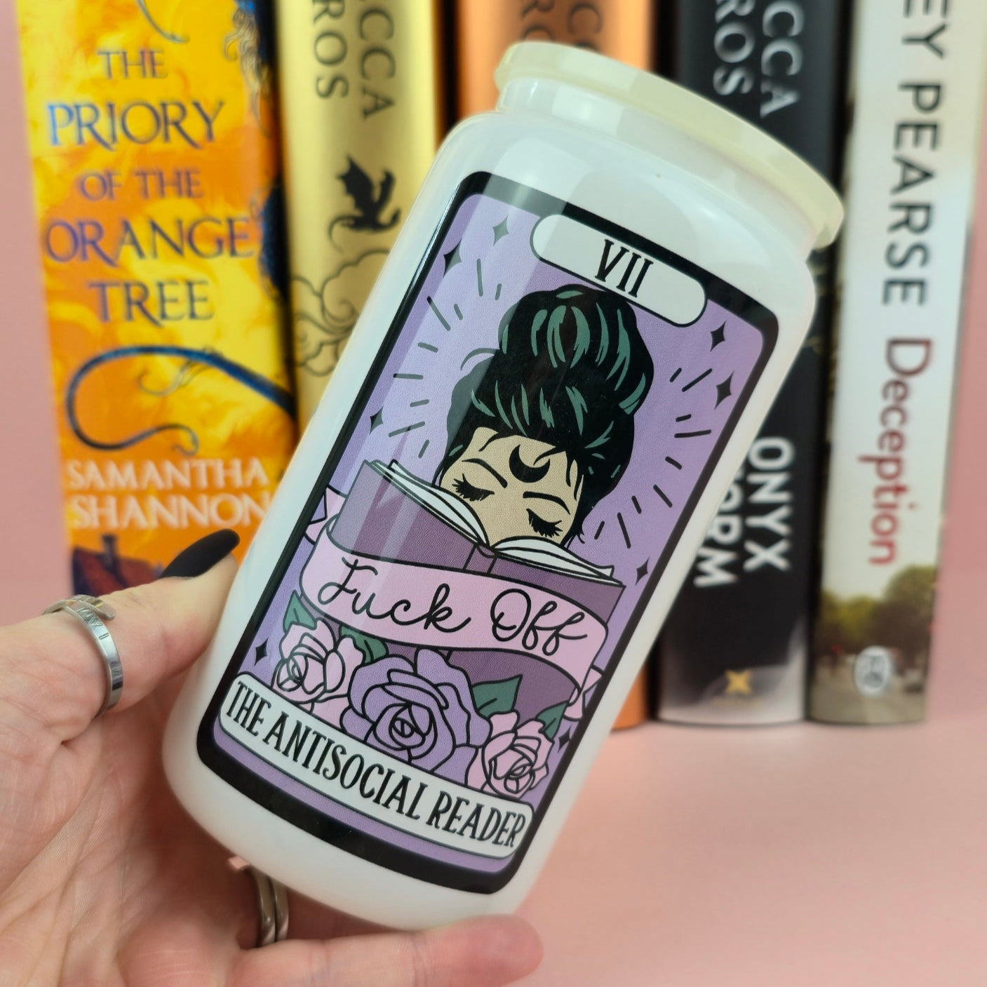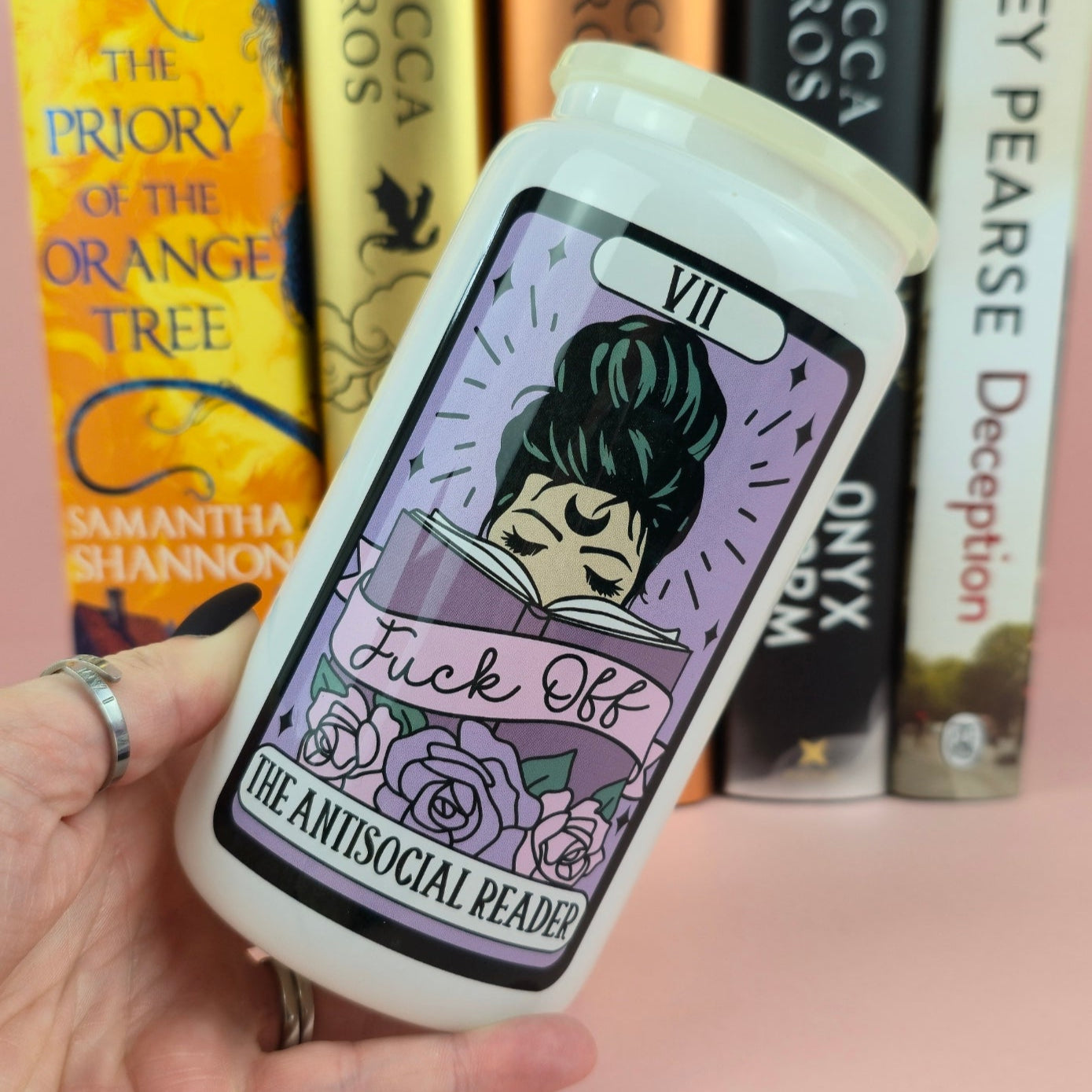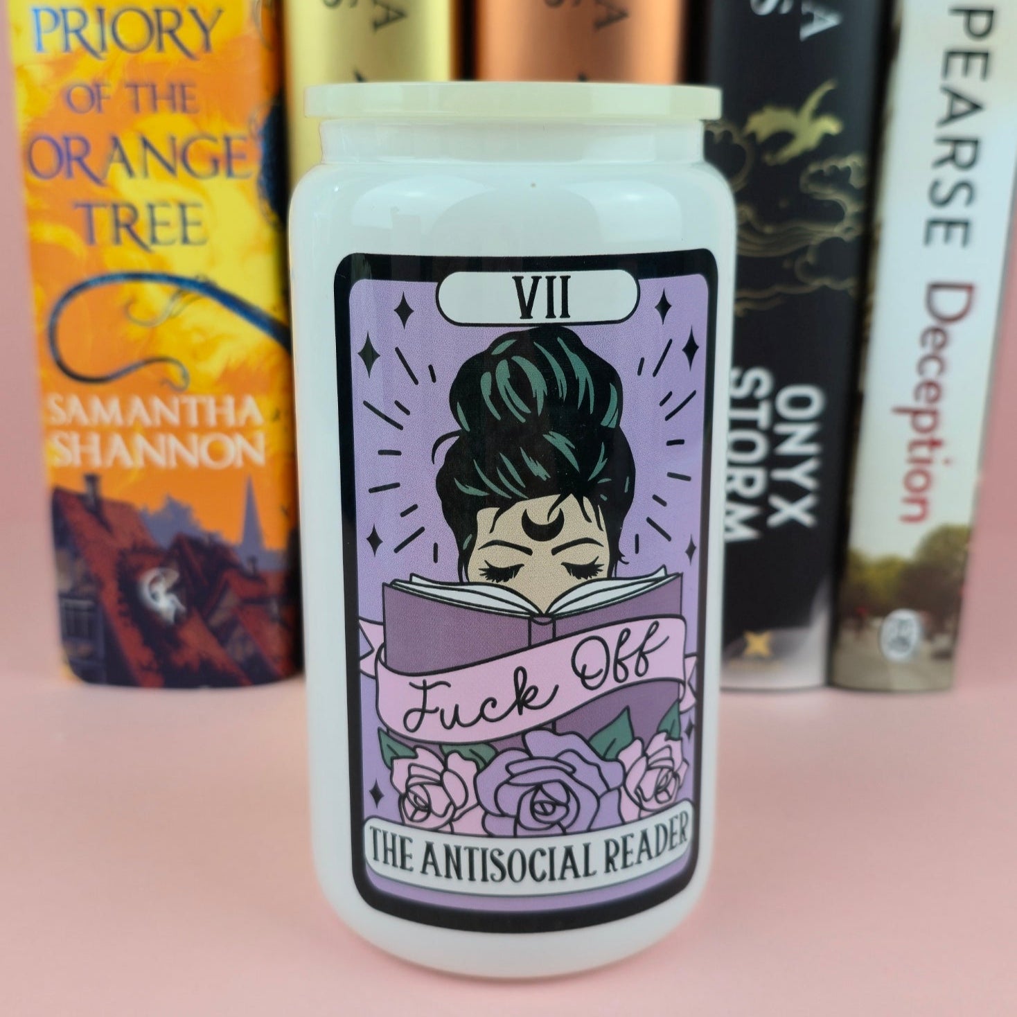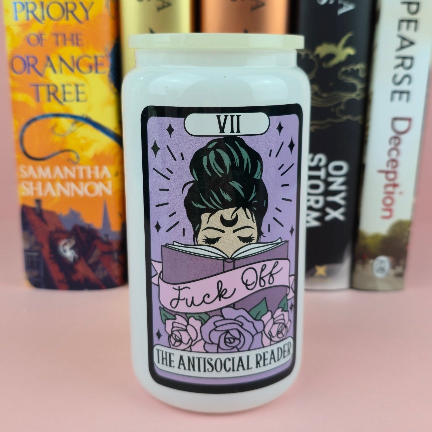Glass Can - The Antisocial Reader Tarot White Glass Tumbler - Bookish Gift - Reader
