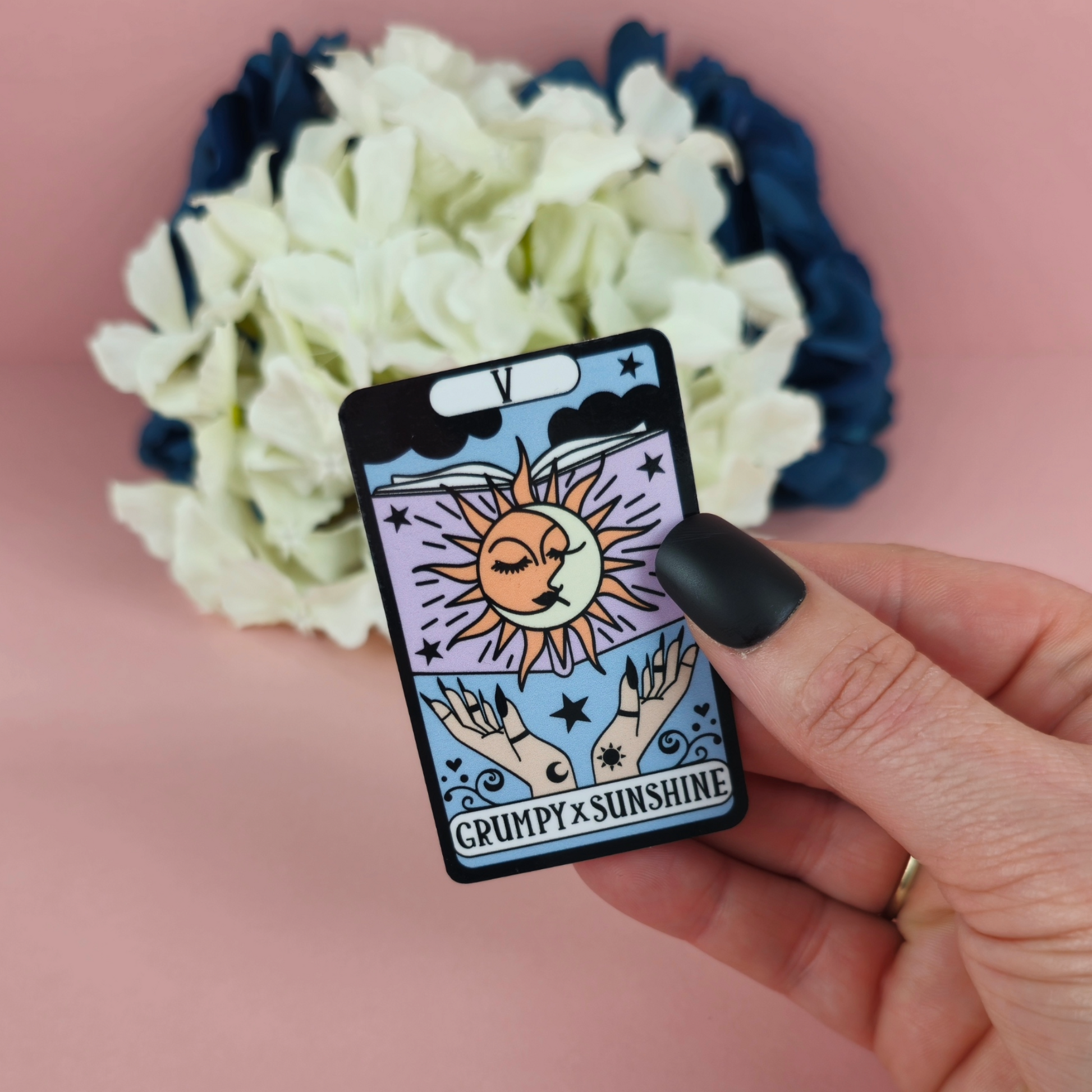 Waterproof Sticker | Grumpy X Sunshine Tarot Card Die Cut Sticker | Bookish Sticker | Reading Sticker | Tarot Card Sticker