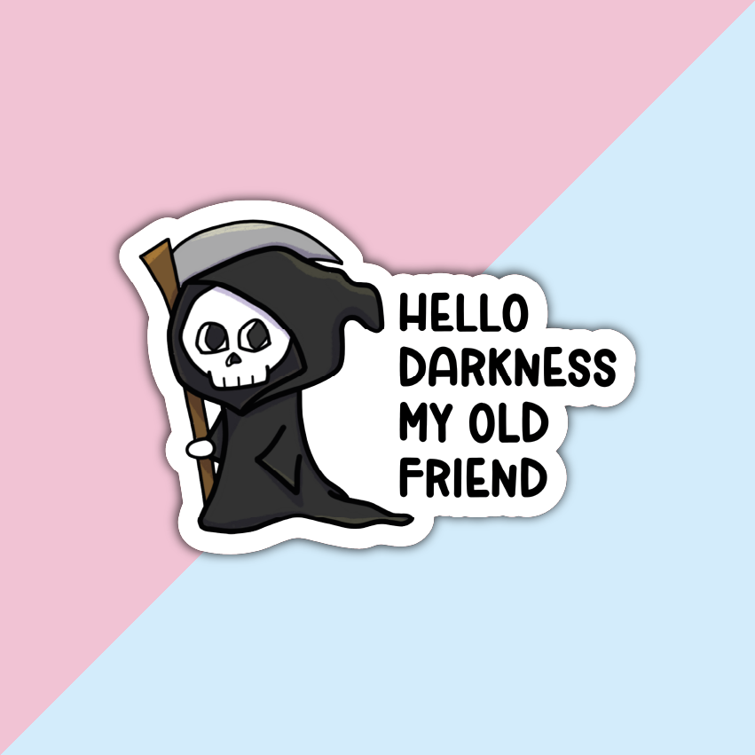 Waterproof Sticker | Hello Darkness My Old Friend Die Cut Sticker | Individual Sticker | Funny Sticker | Gothic Emo