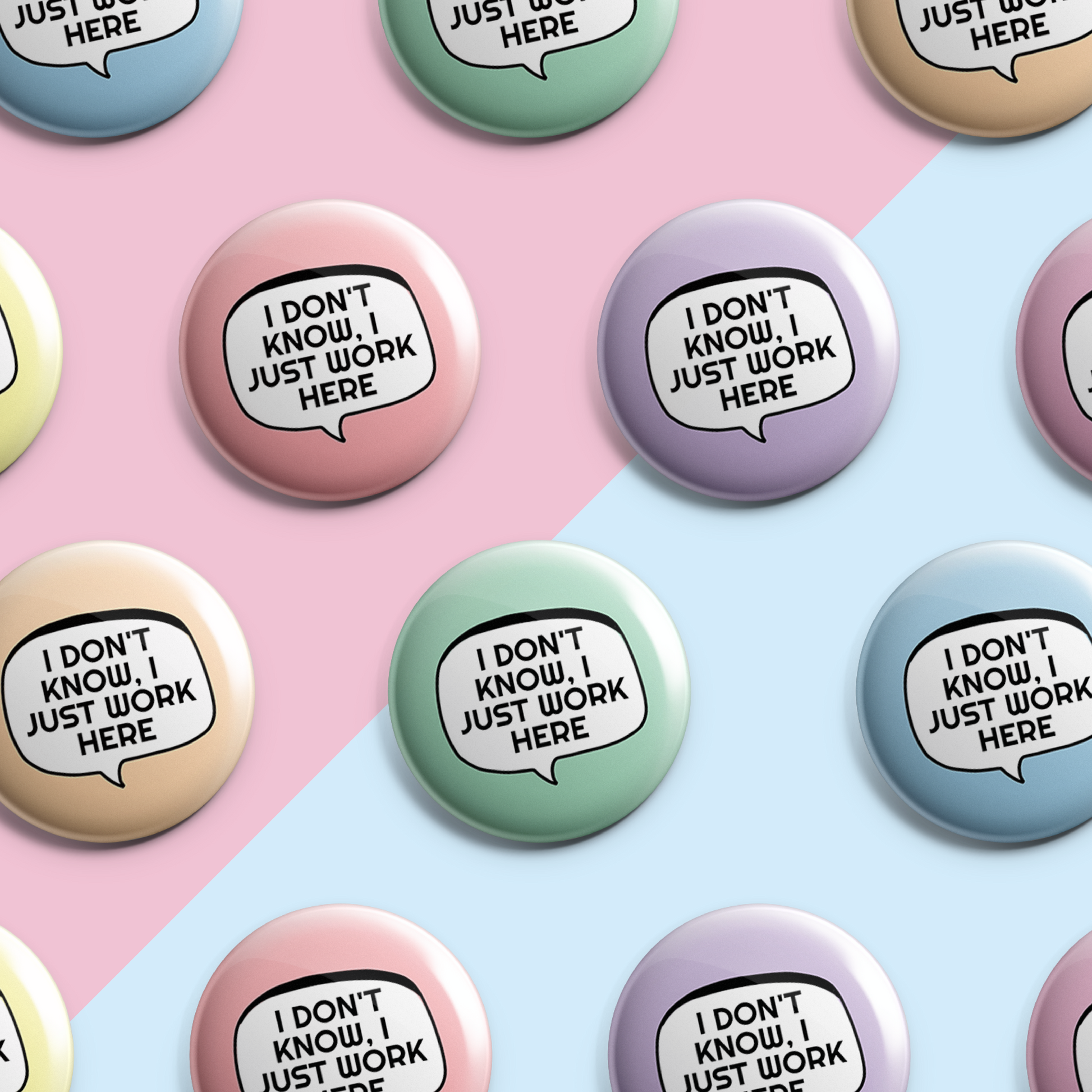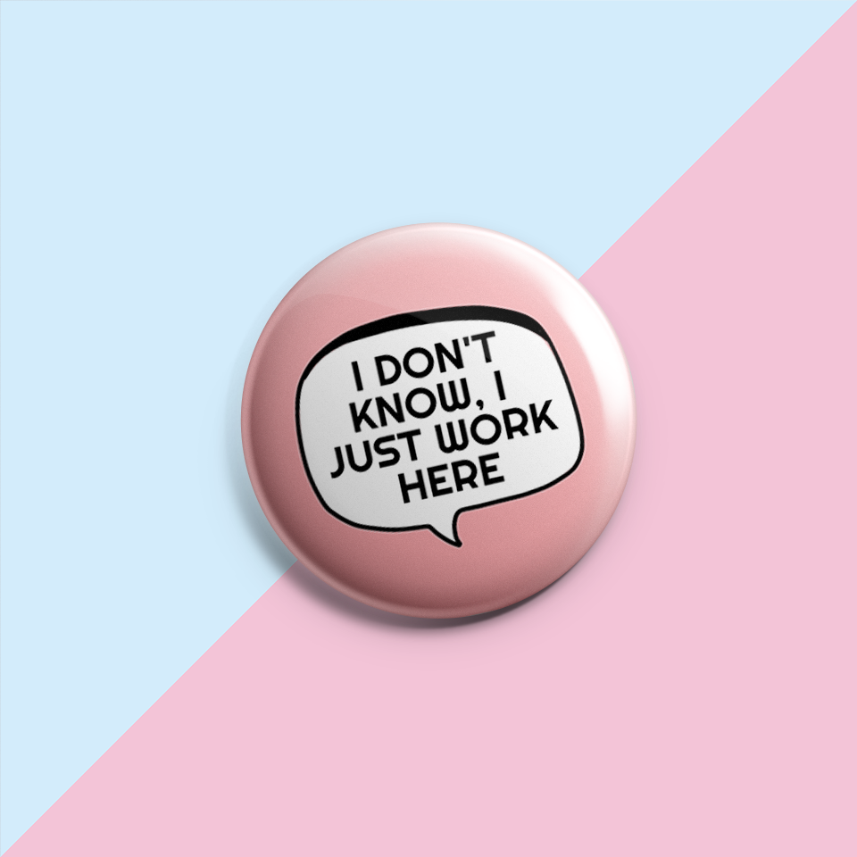 I Don't Know I Just Work Here - Sarcastic Pin Badge