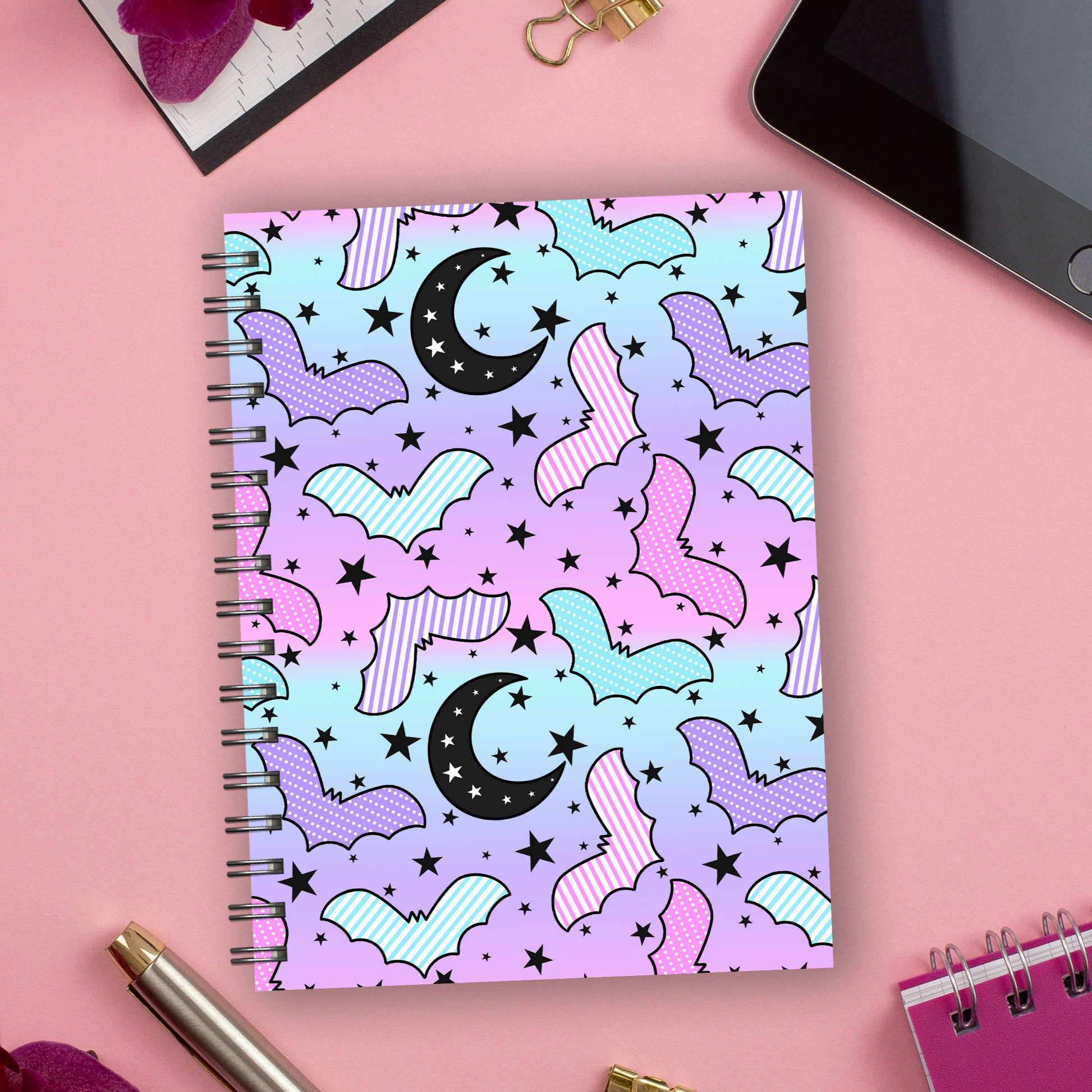 Spiral Notebooks | Kawaii Bats Wire Bound Notebook | Lined Journal | Gift |