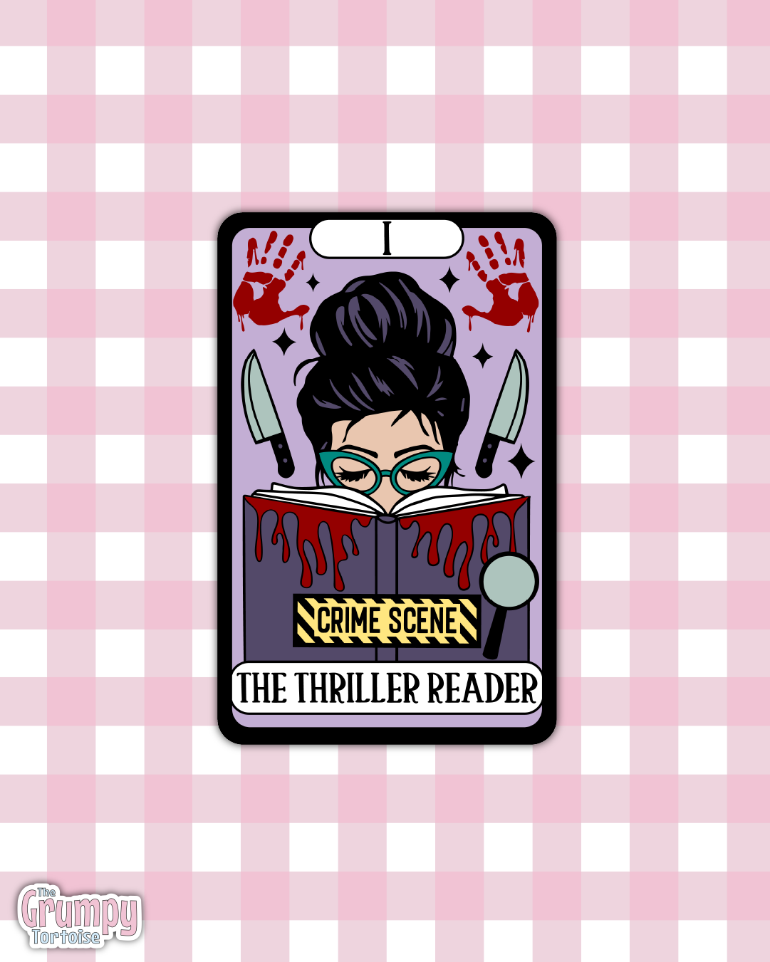 Waterproof Sticker | The Thriller Reader Tarot Card Die Cut Sticker | Bookish Sticker | Reading Sticker | Tarot Card Sticker