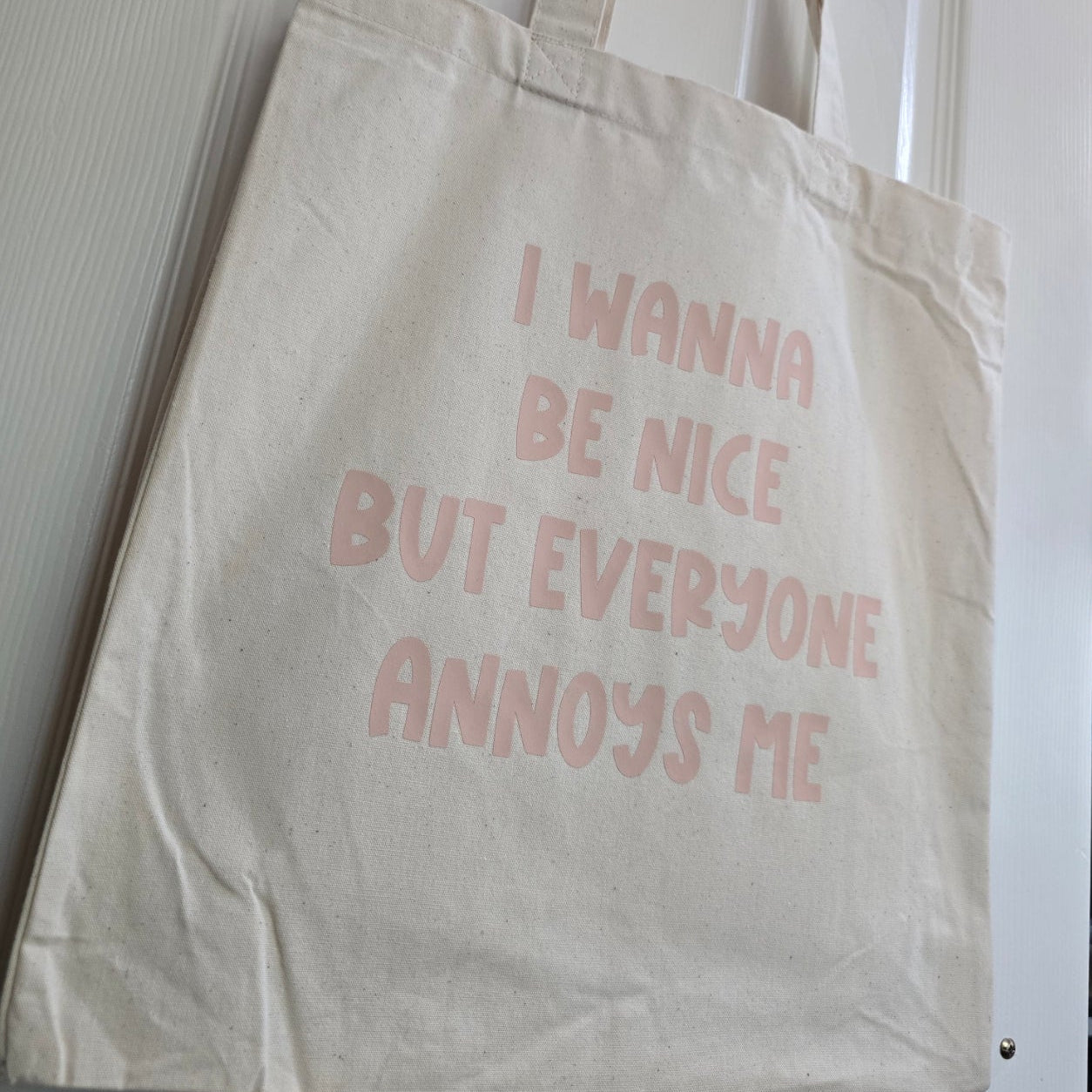 Tote Bag - I wanna be nice but everyone annoys me - Funny Bag - Gift