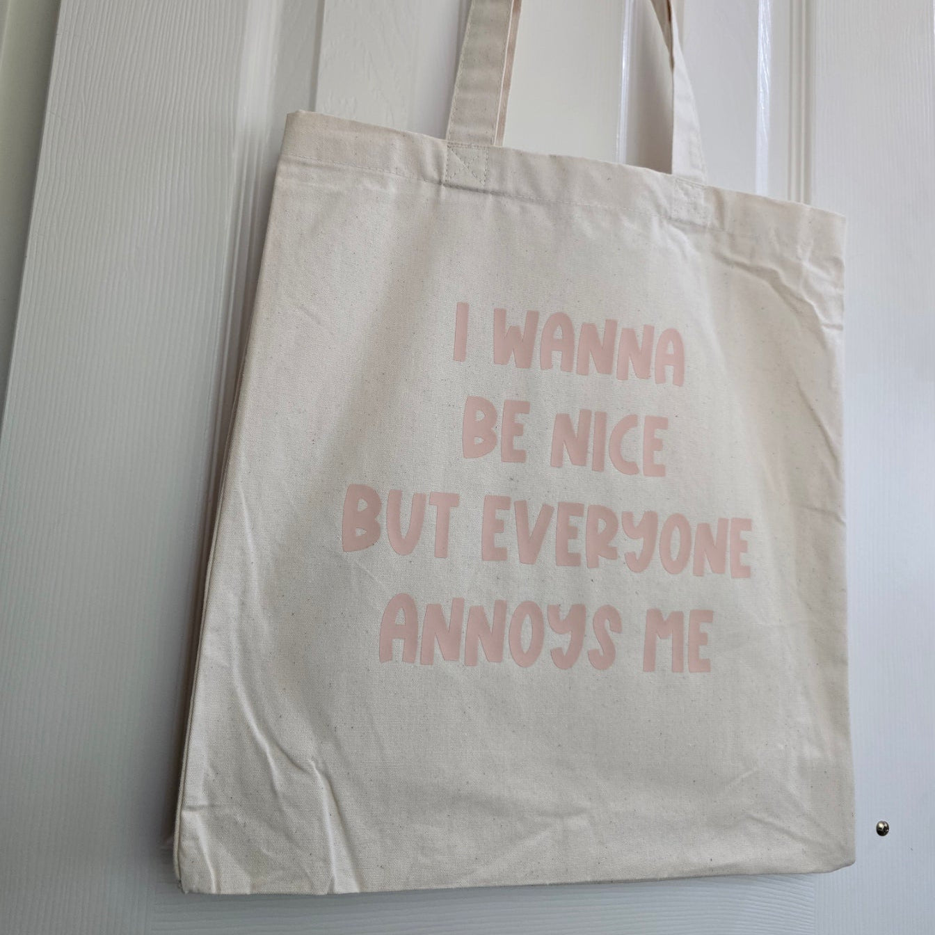Tote Bag, I wanna be nice but everyone annoys me, Funny Bag, Gift