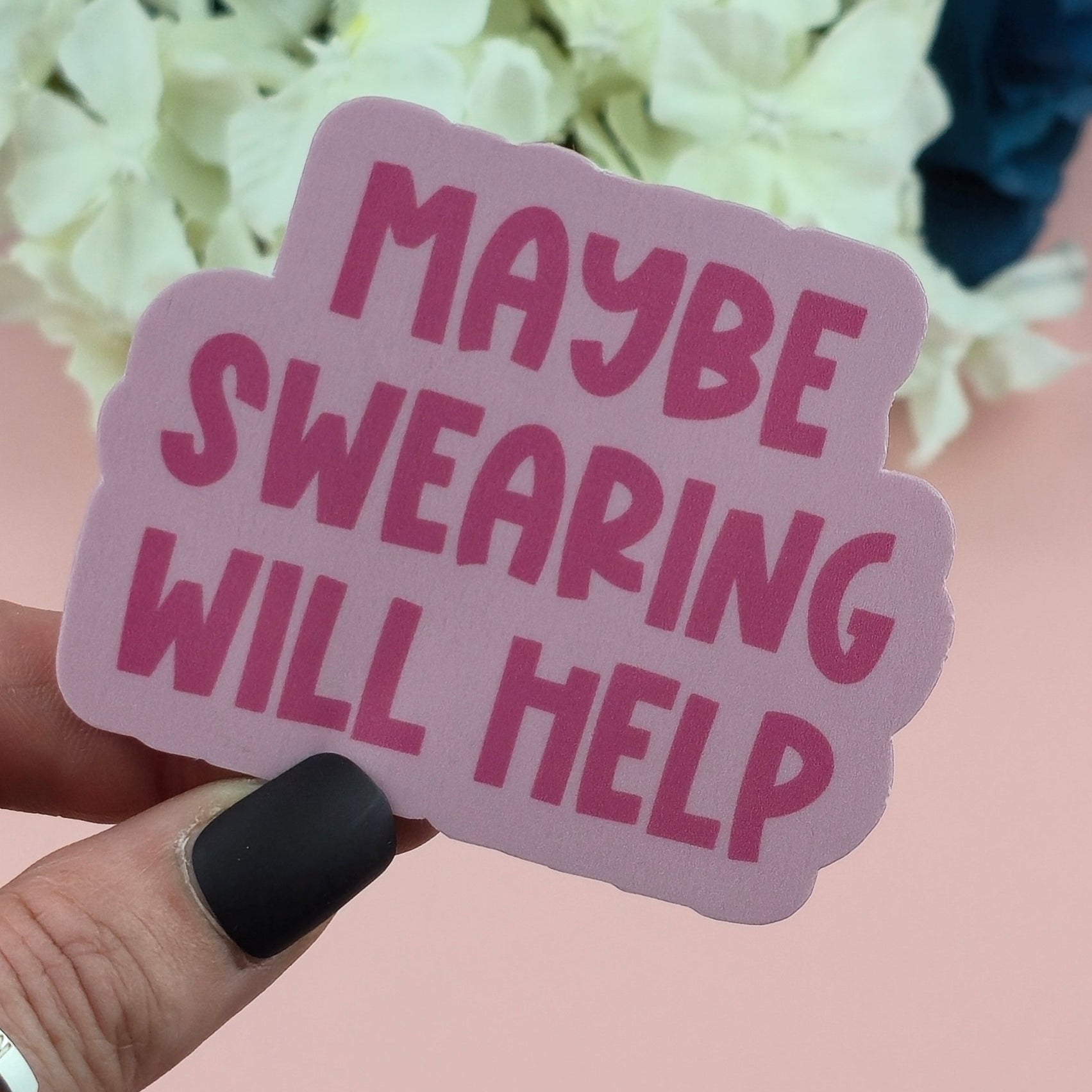 Waterproof Sticker - Maybe Swearing Will Help Single Sticker - Sarcastic Sticker - Funny Sticker - Sassy